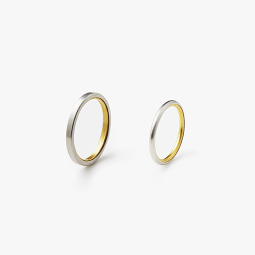 Etsuko SonobeMR11 MR11 このアイテムについて問い合わせる 薄いプラチナで純金のリングを包み込んだデザインのリングです。純金のあたたかみを直に肌で感じられるのがコンセプト。角度によって、落ち着いた色味のプラチナからゴールドがのぞき、上品な雰囲気を演出します。 Online Shop で見る Left: MR12 Right: MR11 Etsuko Sonobe Index