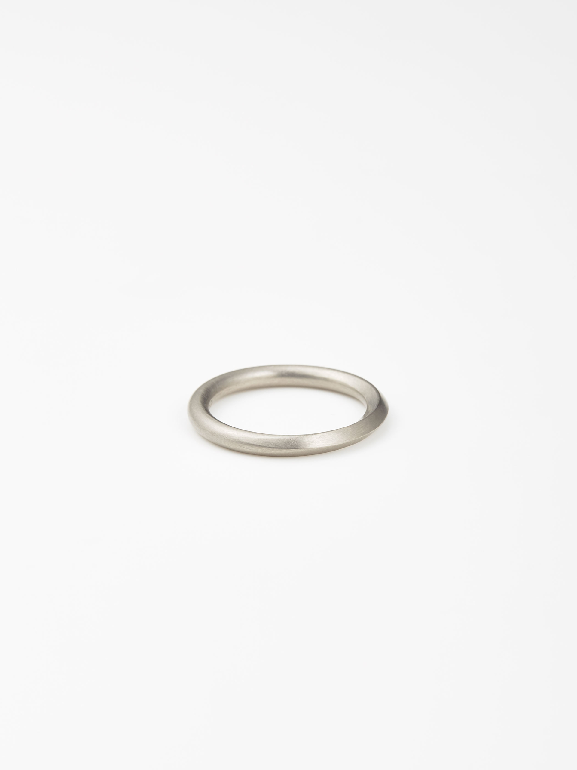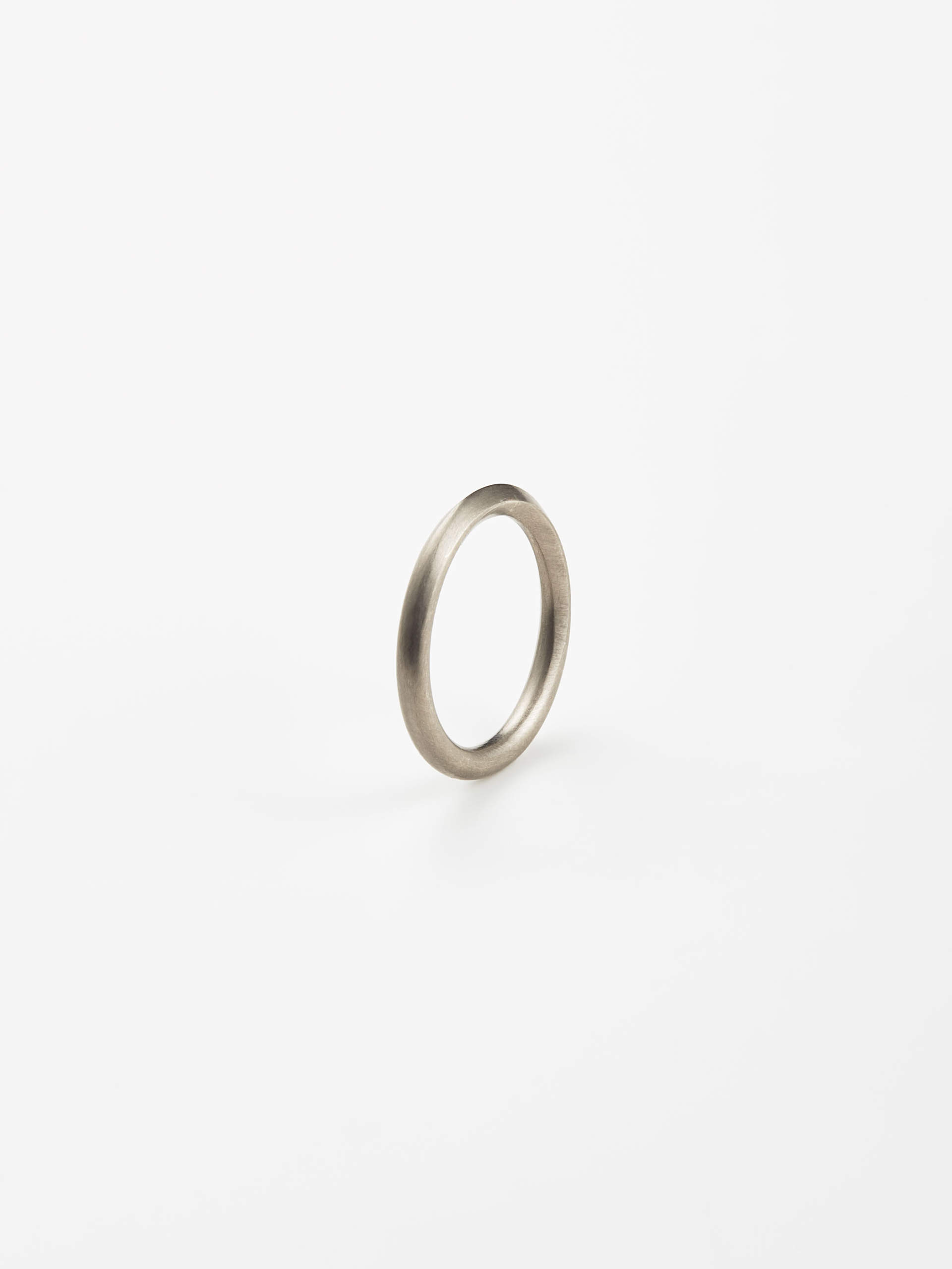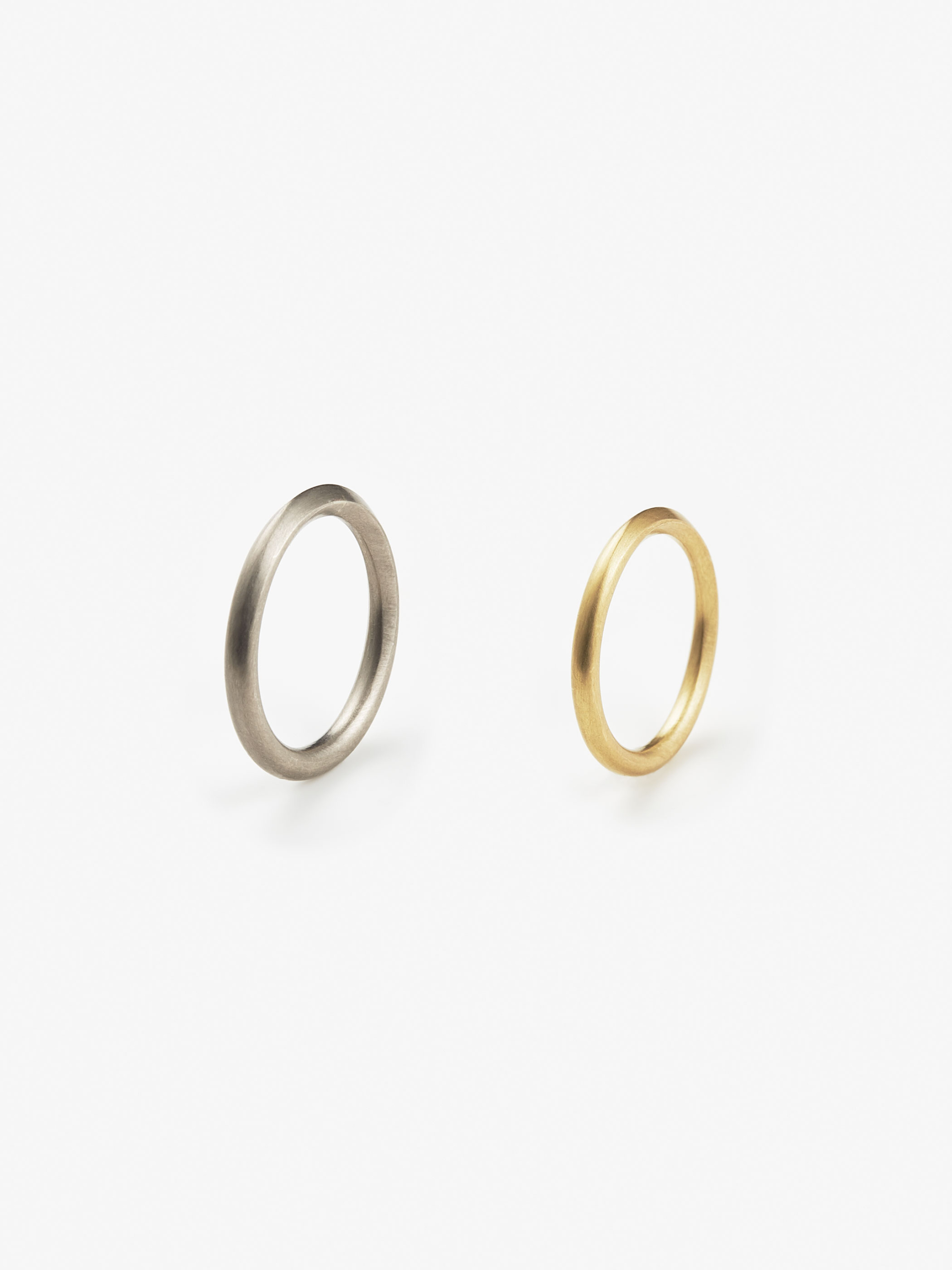 Etsuko SonobeMR33 MR33 このアイテムについて問い合わせる リングは幅約2.5mmの丸線から徐々に角線へと変化しています。ミニマムなデザインで着け心地の良いなめらかな手触りは違和感なく指に馴染みます。またマット仕上げもEtsuko Sonobeらしく、どの素材を選んでも肌によく合い毎日の経過により味わい深くなっていくリングです。 Online Shop で見る Etsuko Sonobe Index