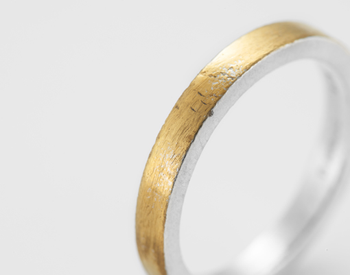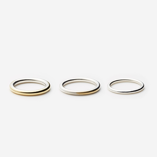 シルバーで薄くコーティングを施したシンプルなかたちのゴールドリングは、