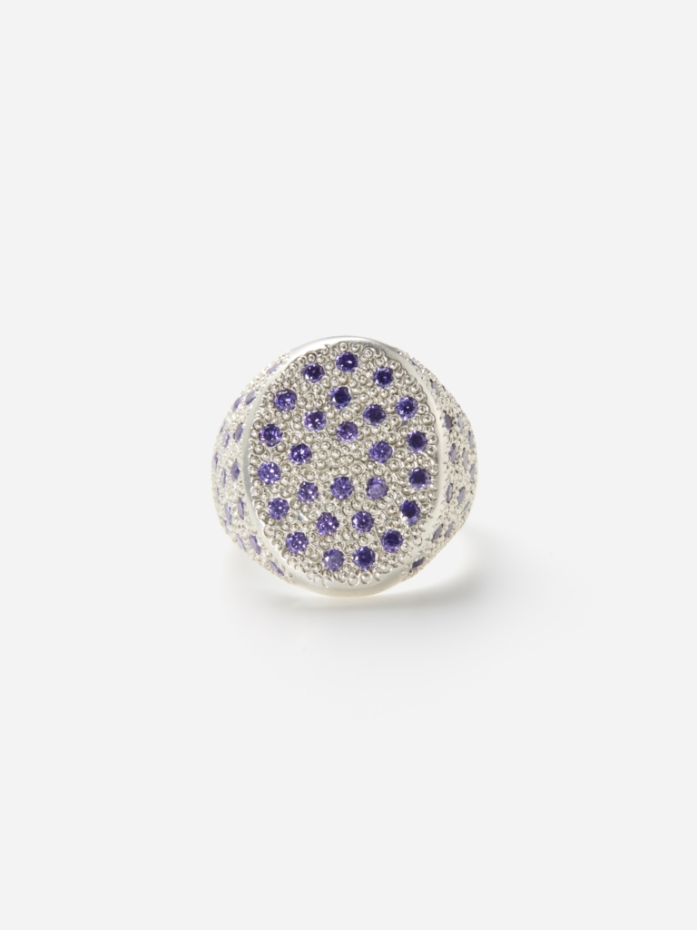 主にロストワックス鋳造で作られる、造形的なフォルムにミル留めされた色石がカラフルにきらめくシルバーリングがマックス・ウォーカーのシグネチャーアイテムです。昨年の日本での初めての展示に続き、AFTでは初お披露目となります。